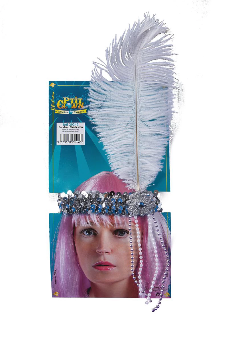 Bandeau Charleston Sequins à Plume, Faux Diamant Et Perles – Argent