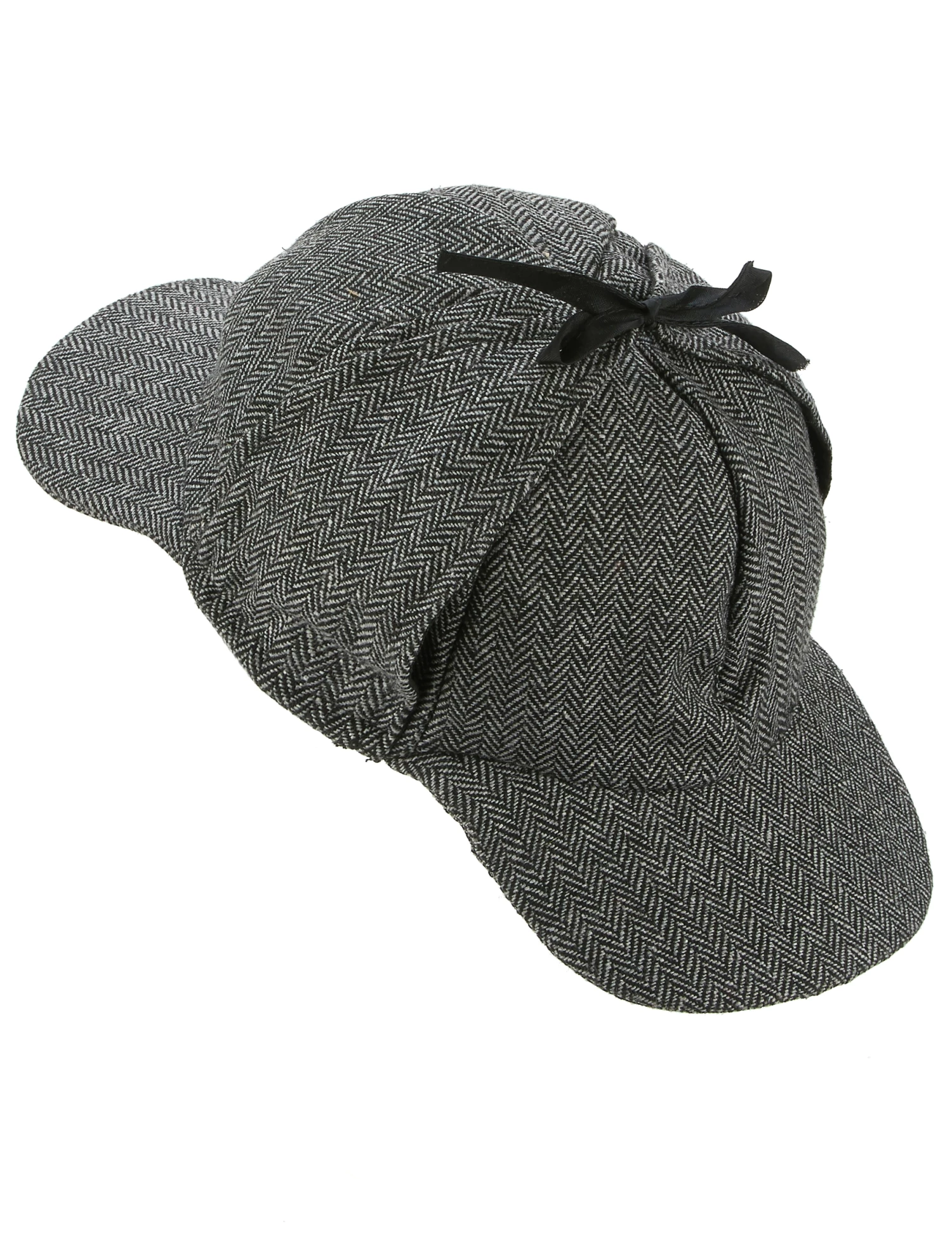 Chapeau de Détective anglais adulte de type « deerstalker » est en tissu souple à motifs tweed gris.