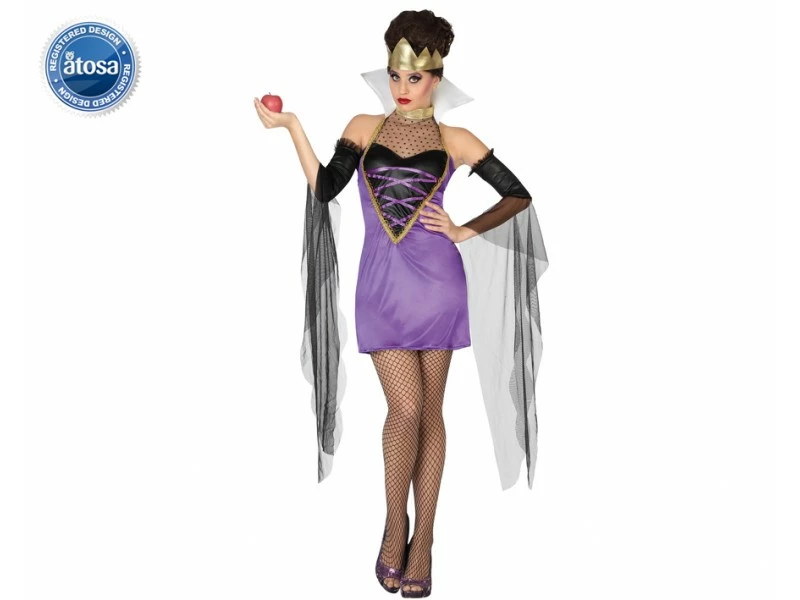 Costume adulte De Reine Mechante taille S/XS et M/LDéguisement pour femme de Reine Mechante. Ce déguisement est composé d’une robe Violette et noir avec un grand col d’une paire de Manches et d’une couronne dorée