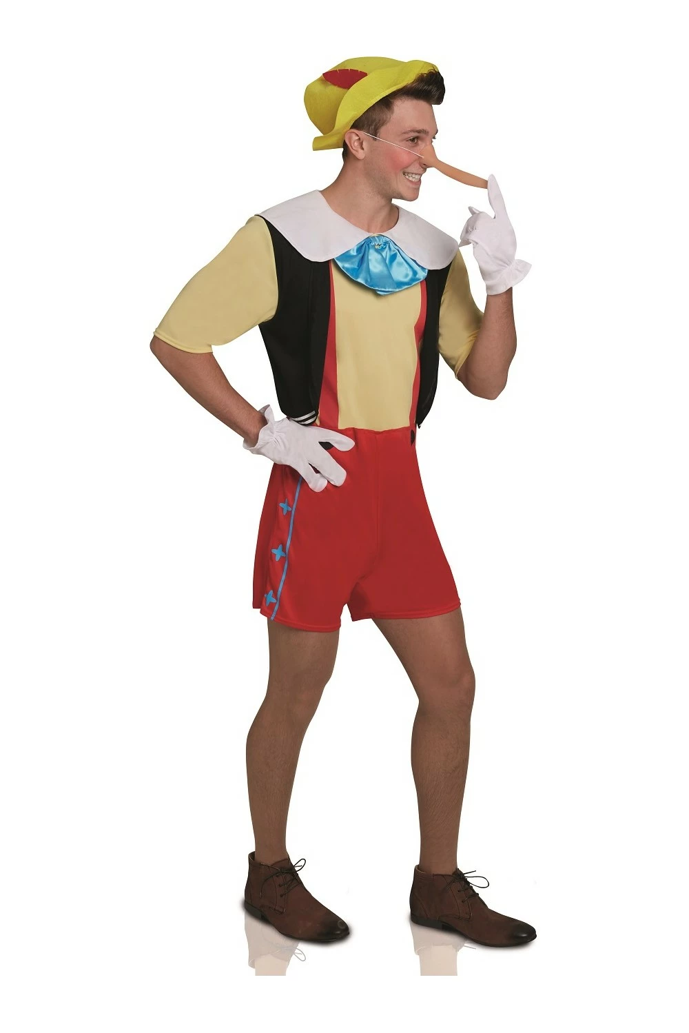 Ce déguisement de Pinnochio sous licence disney est composé d’une combinaison/short rouge et jaune avec veste noire et gants blanc . Il comprend aussi le chapeau et le faux nez