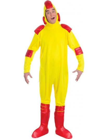 Ce costume de l’extraterrestre ami du Glaude dans le film la « Soupe au Choux »est composé d’une combinaison jaune avec capuche ,matelassé au coudes et sur la tete .