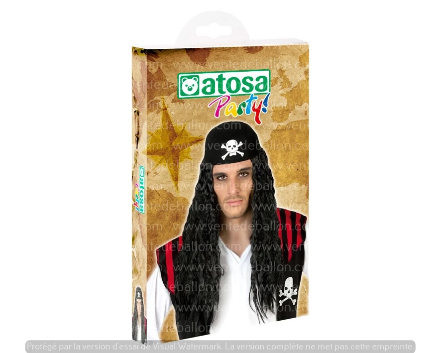 Perruque Pirate Cheveux longs avec Bandeau tête de mort