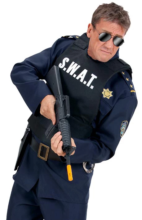 Ce gilet S.W.A.T imitation par-balles est idéal pour compléter votre déguisement de policier. Il se ferme facilement à l’aide de scratchs.